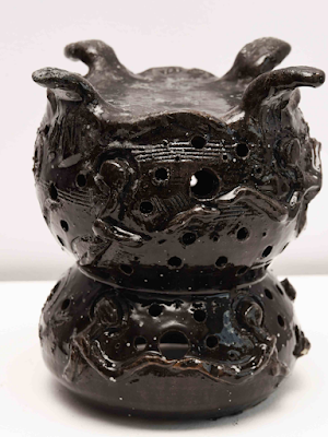 Koko came into the sculpture medium from a rich background of being inspired by the revered Benin art tradition, which perhaps, explains the ancient textures of her work. And from the contemporary age, the artist found inspiration in the masterly works of Peju Alatise. "The sculptural pieces, rich and otherworldly, pay homage to the molding traditions of Benin city," founder of Yenwa Gallery and curator of Water Me, Ugonna Ibe stated. "Fiyin Koko ventures beyond firing and uses brown coffee feldspar glaze to create contemporary vessels that beckon us, ready to hold us or pour into us depending on the viewer’s needs." The curator noted that one of the works titled Vessels expose "the growth in Fiyin’s practice inspired by her encounters with notable artist Peju Alatise, further emphasizing the importance of nurturing relationships and community."